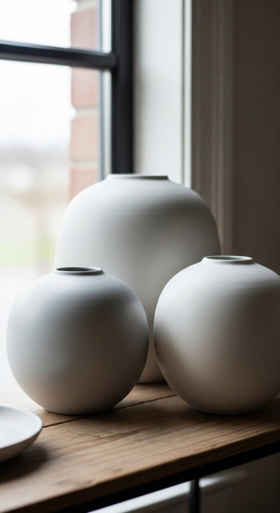 Ceramic vases add form without demanding attention. Rounded or gently curved shapes feel calm and timeless.