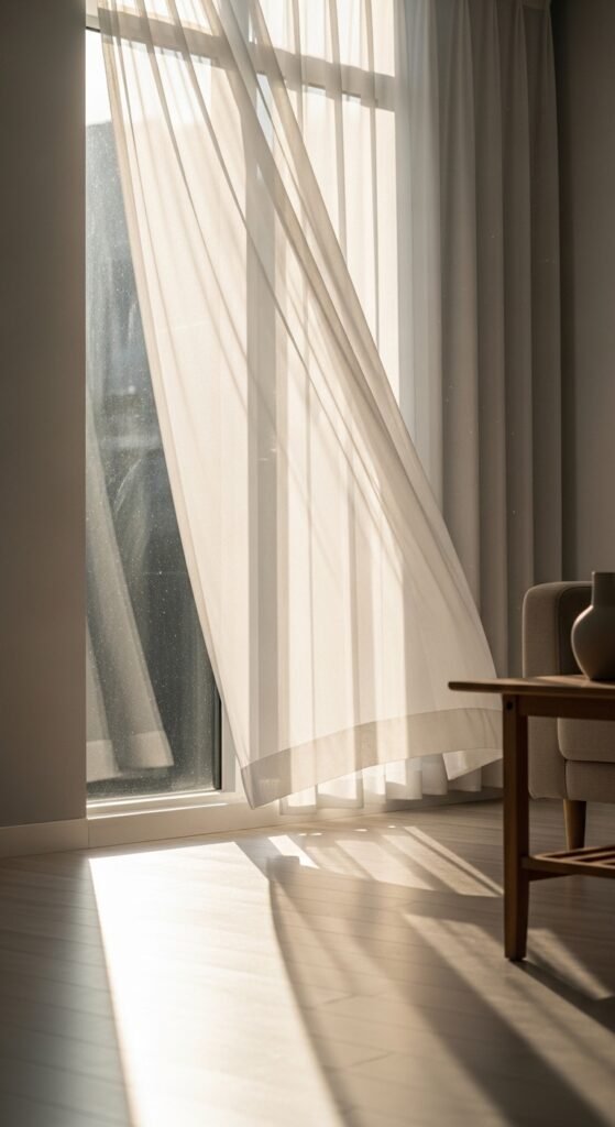Sheer curtains pair well with heavier drapes later if you want more warmth.